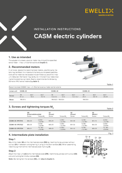 CASM電動(dòng)缸非常適合執(zhí)行快速、強(qiáng)大的線性運(yùn)動(dòng)。 與氣動(dòng)或液壓缸不同,CASM電動(dòng)缸具靈活性,因此可以準(zhǔn)確定位。 其模塊化概念可輕松連接任何電機(jī)和控制系統(tǒng),大大降低了設(shè)計(jì)和編程成本。得益于材料和IP54S級(jí)密封系統(tǒng),即使在惡劣條件下,CASM電動(dòng)缸也可長(zhǎng)期使用。低齒隙設(shè)計(jì)提供高達(dá)±0.01mm的定位精度。CASM電動(dòng)缸與適合于各種速度和力度的絲杠配合使用是各種應(yīng)用的較佳解決方案。